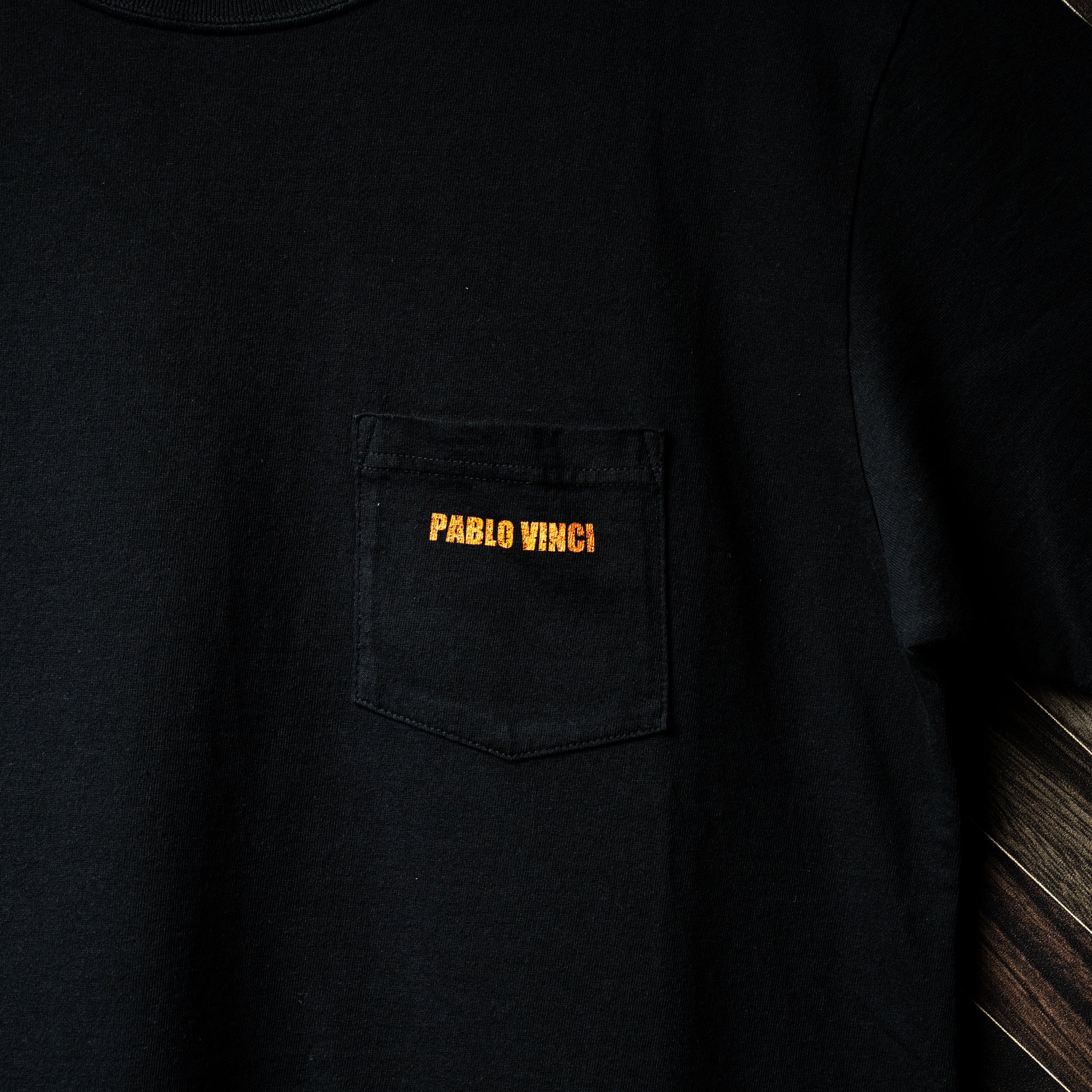 フロントは左胸ポケット付きで、ポケット部分にはオレンジカラーの「PABLO VINCI」ロゴをワンポイントでプリント。